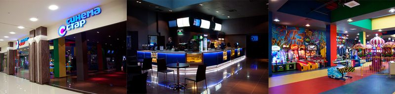 Синема СтарКинотеатр «Синема Стар», расположенный в ТРК «Рио», оснащен новейшей системой видеозвука, которая позволяет представлять кинопоказ в современном качестве. На территории кинотеатра есть кафетерии, бары, боулинг и каток.